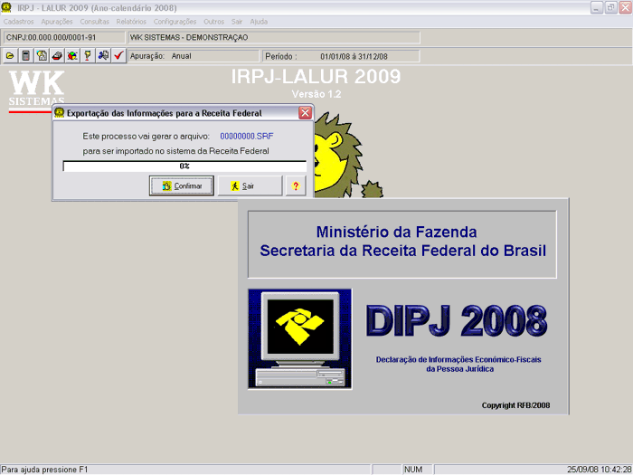 Geração de arquivo para declaração da SRF envolvendo informações do IRPJ-LALUR e MTFiscal;
