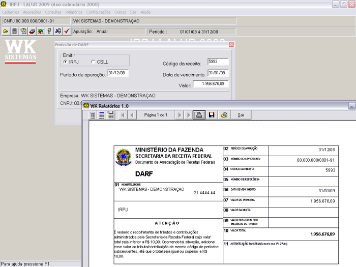 Sistema para Cálculo Automático do IRPJ e CSLL com Emissão Integrada do LALUR