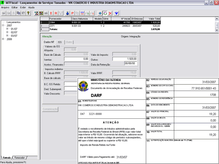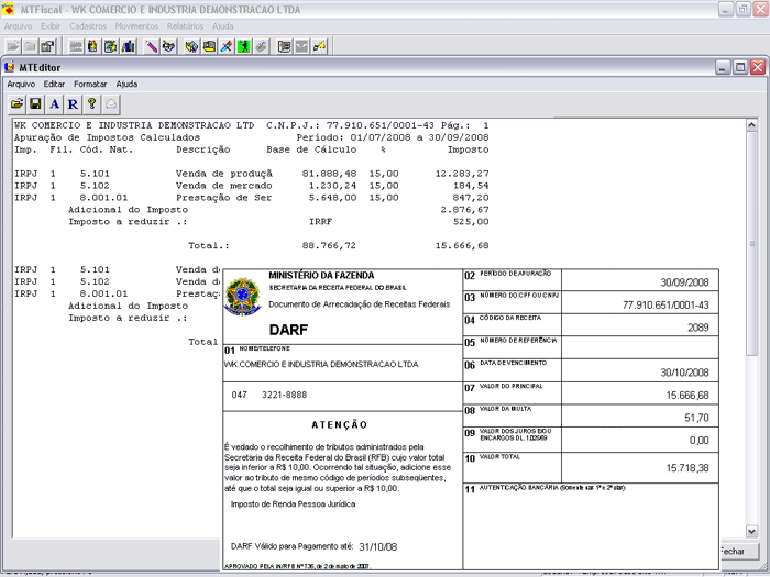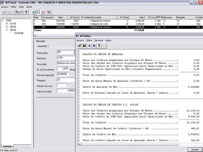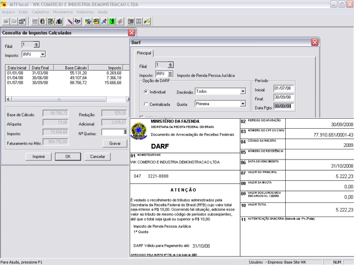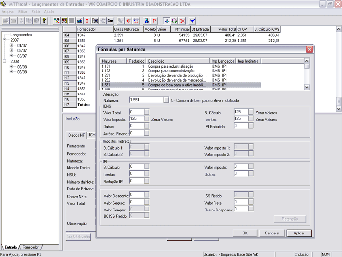 Cadastro de fórmulas específicas para cálculo dos impostos e sugestão de valores no momento de lançamentos;
