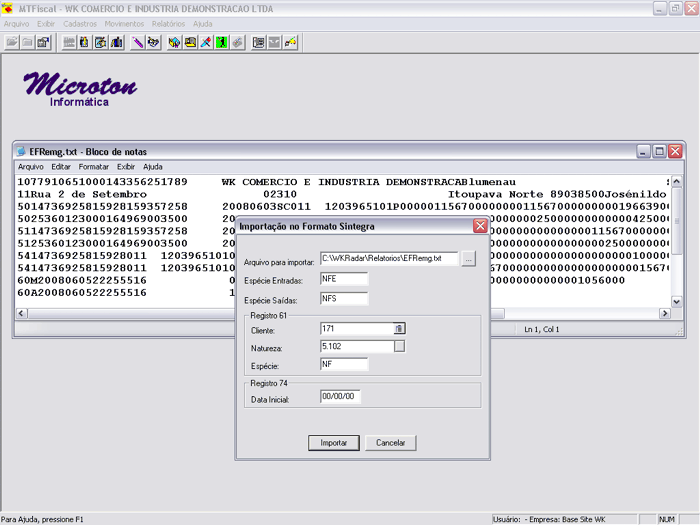 Importação automática dos cadastros de clientes/fornecedores e produtos que consta no arquivo no leiaute do Sintegra quando o mesmo não estiver cadastrado na base de dados;