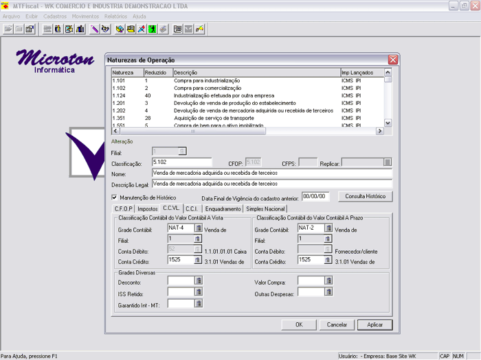 Plano gerencial criado pelo usuário a partir do CFOP, possibilitando diferentes regras de cálculos de impostos e tratamentos de valores para contabilização;