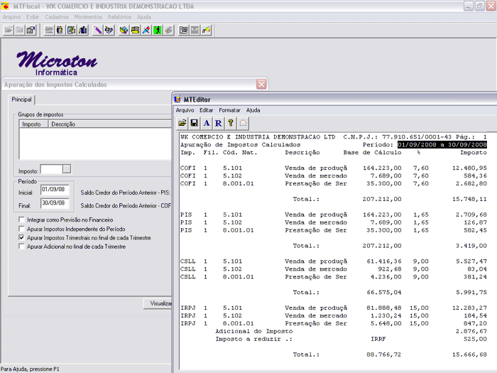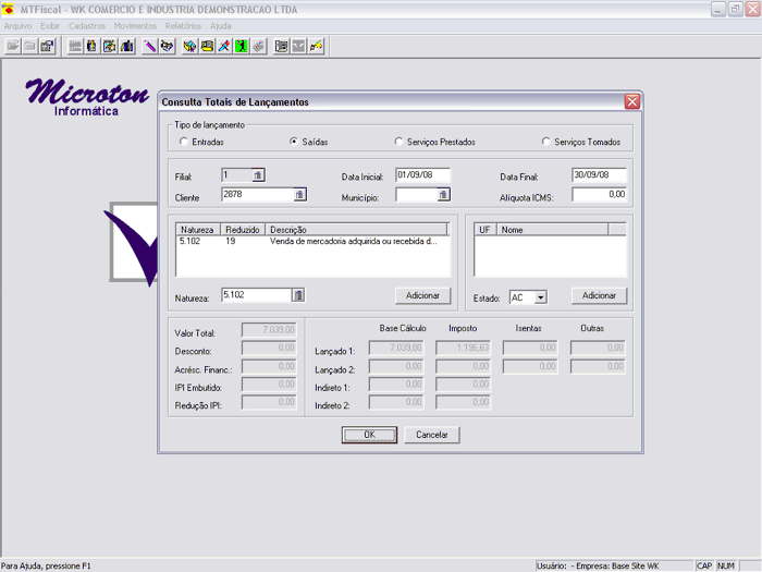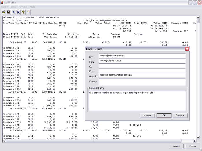 Relatórios fiscais e gerenciais nas mais variadas formas, permitindo múltiplos filtros de seleção.