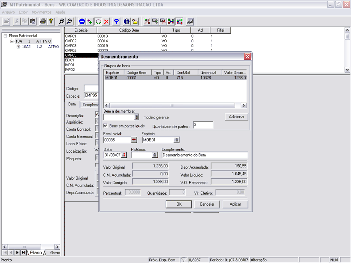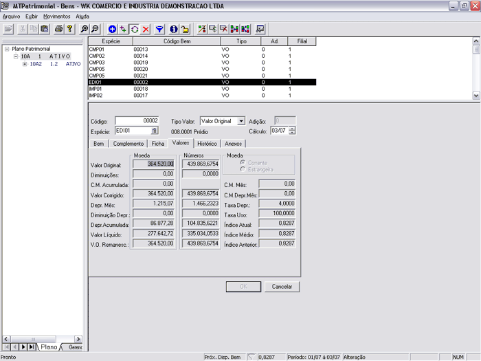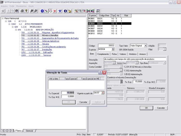 • Múltiplas alterações de taxas de depreciação por bem ou conta;