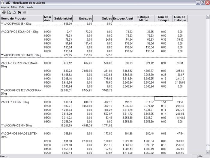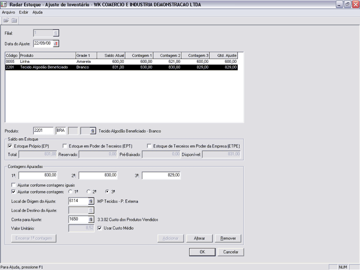 Avaliação de estoques pelo custo médio permanente ou custo médio mensal com possibilidade de recálculos;