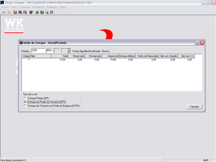 Controle de saldos efetivos, reservados e pré-baixados por produtos e por grades de produtos;