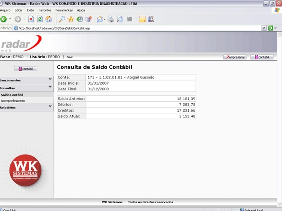 Acompanhamento diário ou mensal de movimentação de uma determinada conta, com seus totais de débitos, créditos e saldos respectivos;